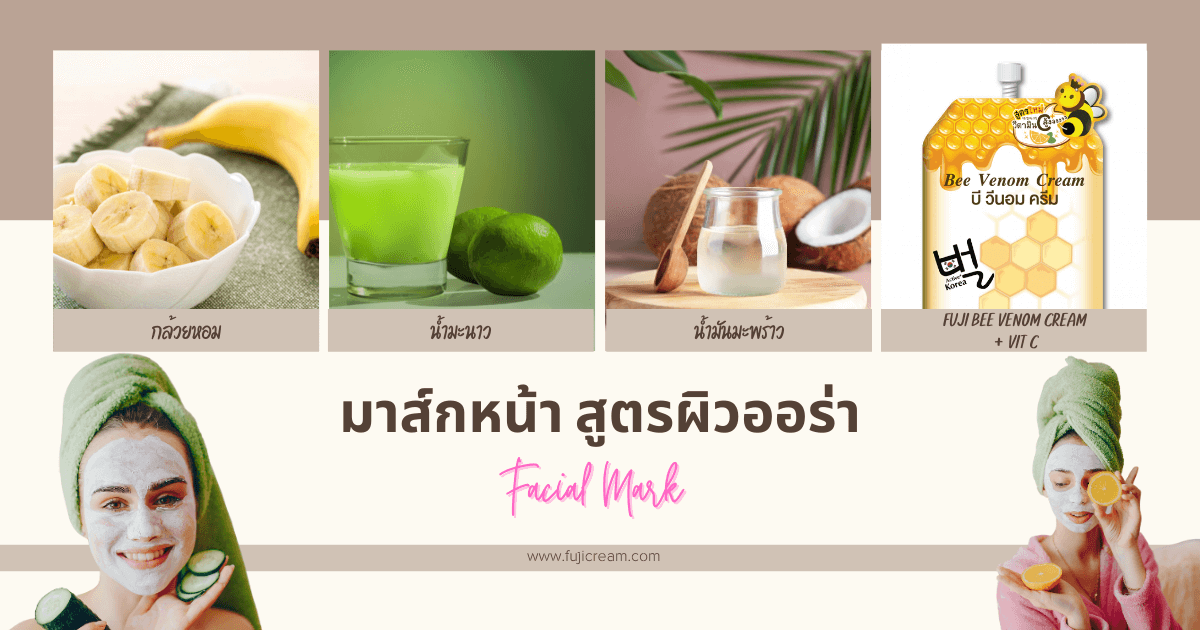 ผสมกล้วยหอมบดน้ำมะนาวและน้ำมันมะพร้าวเข้าด้วยกัน แล้วเติม ฟูจิ บีวีนอม พอกบนผิวที่แห้งสะอาด ทิ้งไว้ 10-15 นาที แล้วล้างออก สูตรนี้เหมาะสำหรับคนผิวหน้ามัน ช่วยทำให้ผิวนุ่มชุ่มชื้น กระจ่างใส ลดความมันบนใบหน้า