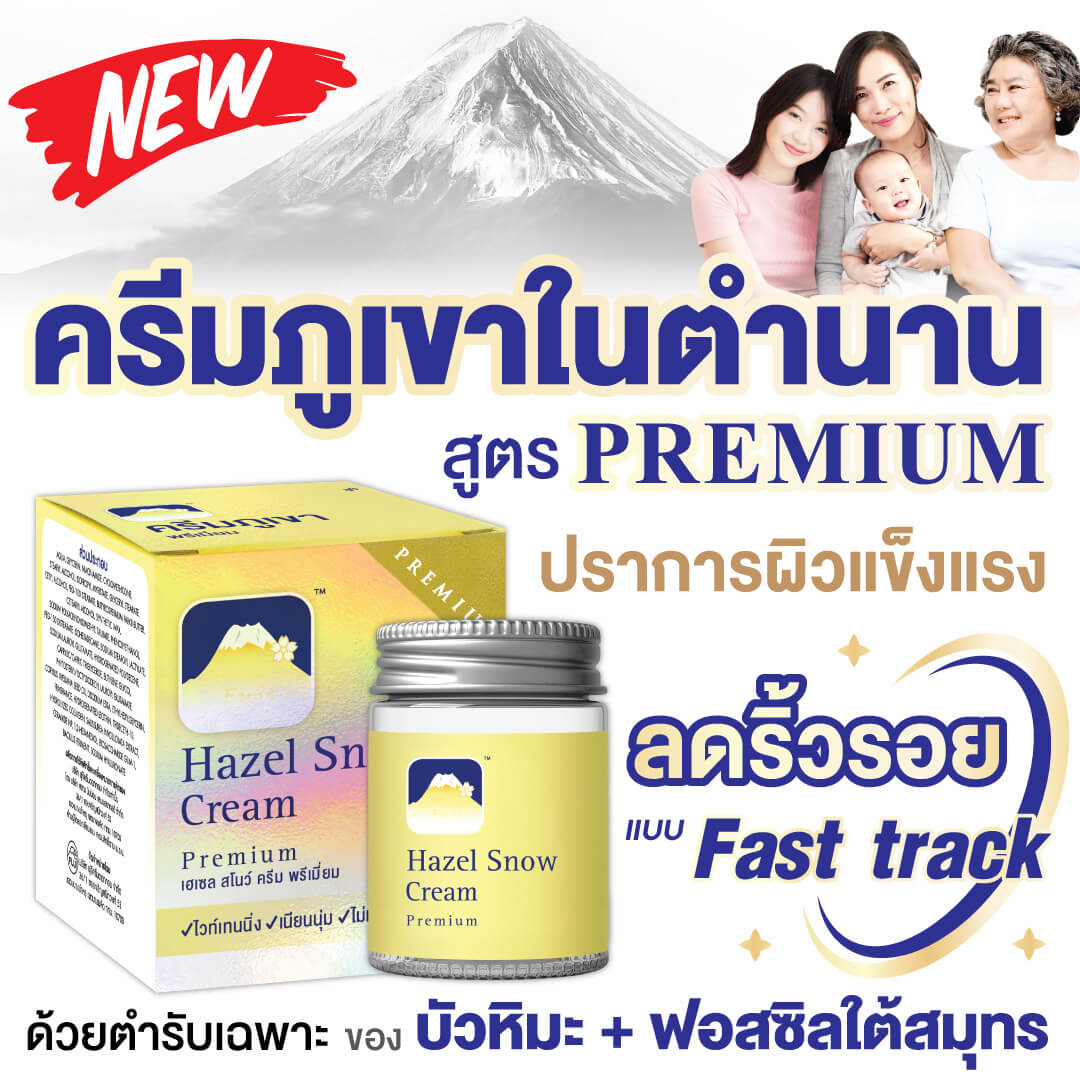 Hazel Snow Cream Premium ก้าวสู่การยกระดับครั้งใหม่! ครีมภูเขา สูตรพรีเมี่ยม ด้วยความตระหนักถึงปัญหาผิวของสาวๆทุกช่วงวัย รวมทั้งผิวที่เสื่อมสภาพตามกาลเวลา ครีมภูเขา เฮเซล สโนว์ ครีม พรีเมี่ยม ช่วยเปิดประสบการณ์การดูแลผิวที่ลึกล้ำกว่าเดิม ด้วยพลังจากสารสกัดที่อัดแน่น ผสานคุณค่าจากธรรมชาติ ในการปลอบประโลมผิว ชะลอการสึกหรอของผิว คืนความเปล่งปลั่ง เสมือนเติมน้ำให้ผิว ให้ผิวอิ่มฟูแข็งแรงสุขภาพดี