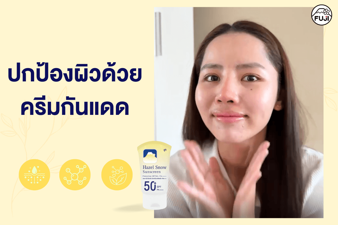ฝุ่น PM 2.5 สามารถทำงานร่วมกับรังสี UV ทำให้อนุมูลอิสระในผิวหนังเพิ่มขึ้น ดังนั้นการทาครีมกันแดดที่มีค่า SPF 30 ขึ้นไปทุกวันจึงเป็นสิ่งจำเป็น ครีมกันแดดภูเขา Hazel Snow Sunscreen ครีมกันแดด SPF 50 PA+++ ที่ช่วยปกป้องผิวจากทั้งรังสี UVA และ UVB และมีคุณสมบัติช่วยลดการอักเสบของผิว ด้วยบัวหิมะ ที่ช่วยในการปลอบประโลมผิวได้เป็นอย่างดี