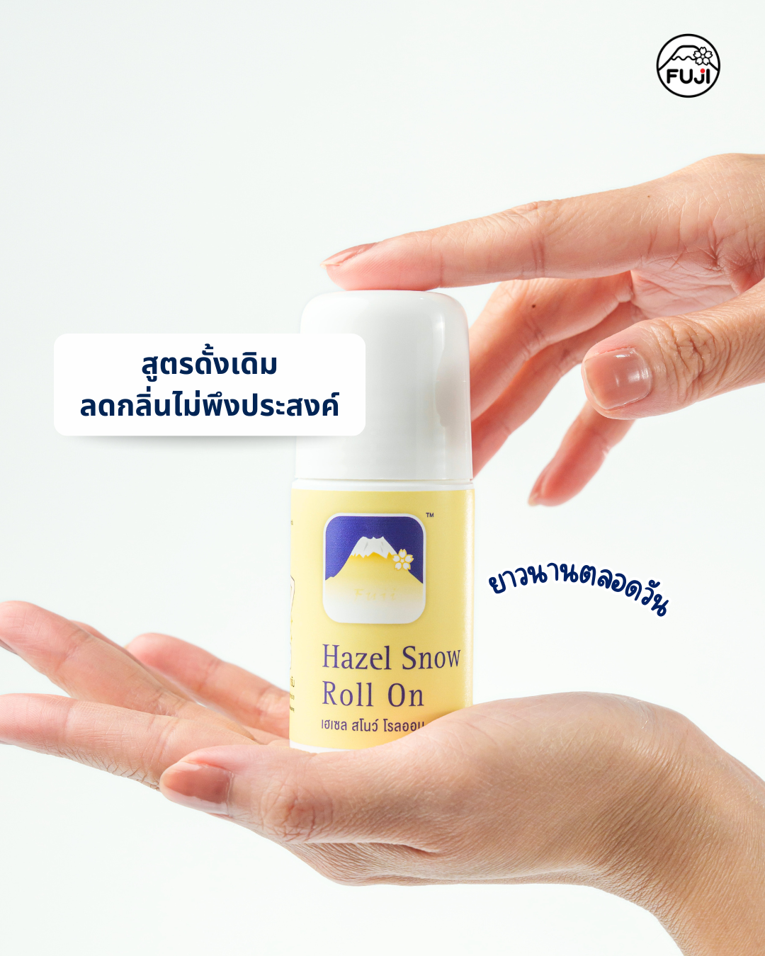และนี่คือเหตุผลที่ฟูจิครีม (Fujicream) ได้พัฒนาโรลออนภูเขาสูตรดั้งเดิม FUJI HAZEL SNOW ROLL ON และ สูตรไข่มุก FUJI HAZEL SNOW PEARL ROLL ON ให้เป็นทางเลือกที่ดีที่สุดสำหรับทุกวัย ไม่ใช่แค่ “โรลออนดับกลิ่นกาย” ทั่วไป แต่เป็นผลิตภัณฑ์ดูแลกลิ่นตัวอย่างเข้าใจลึกถึงสาเหตุจริง