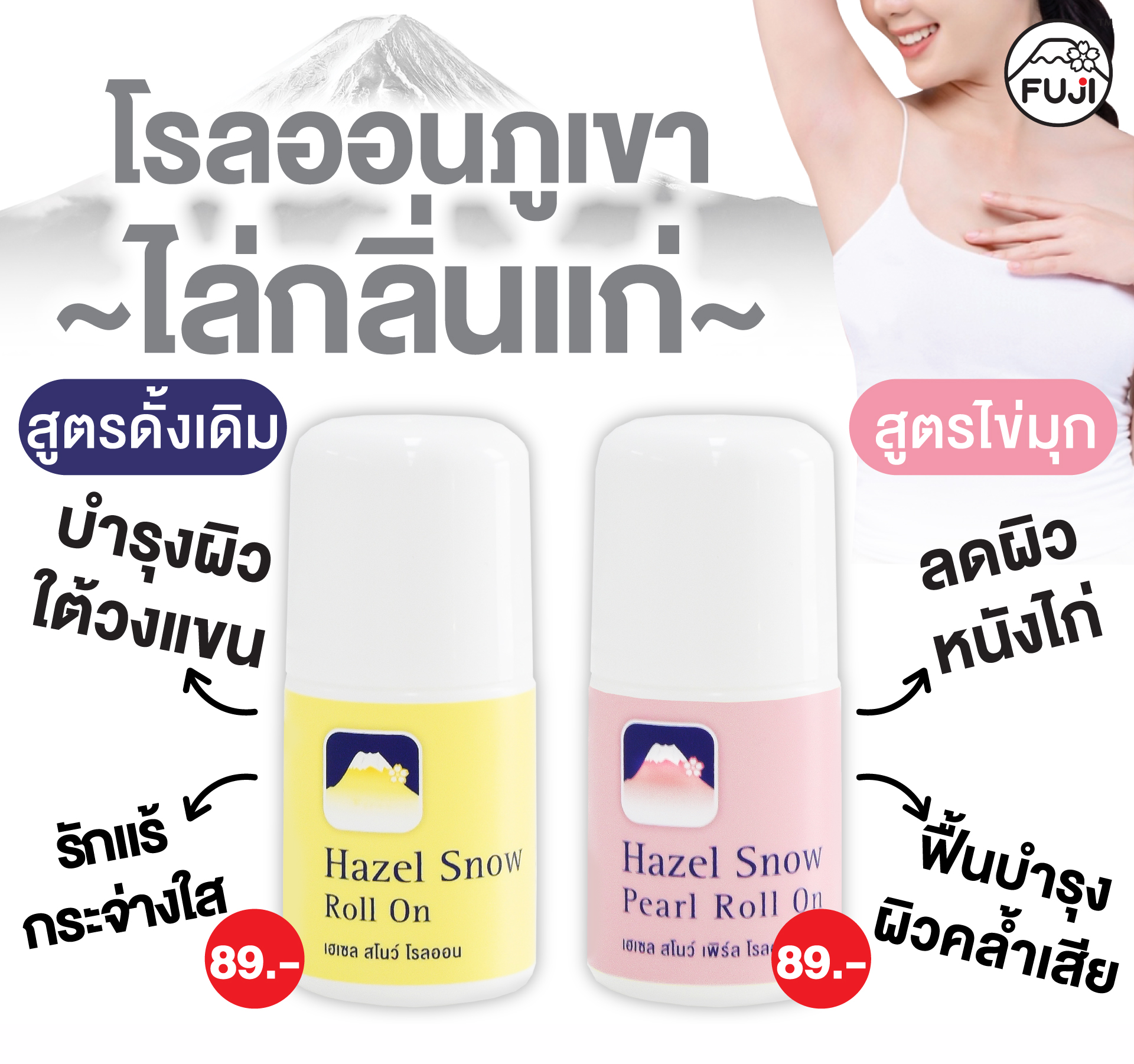 FUJI HAZEL SNOW ROLL ON โรลออนเฮเซล ที่ช่วยดับกลิ่น บำรุงผิว กระชับรูขุมขน ไม่ระคายเคือง ใช้ได้ทั้งผู้หญิงและผู้ชาย เป็น โรลออนผู้หญิง และ โรลออนผู้ชาย ที่ตอบโจทย์คนยุคใหม่อย่างแท้จริง