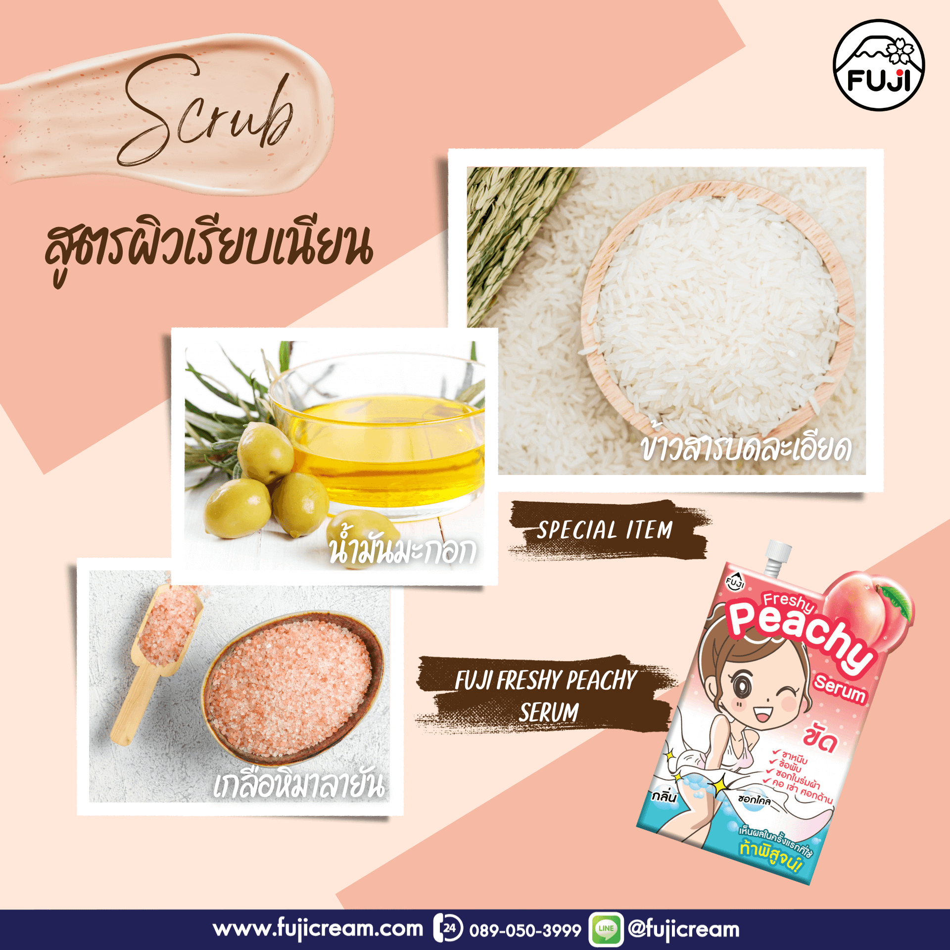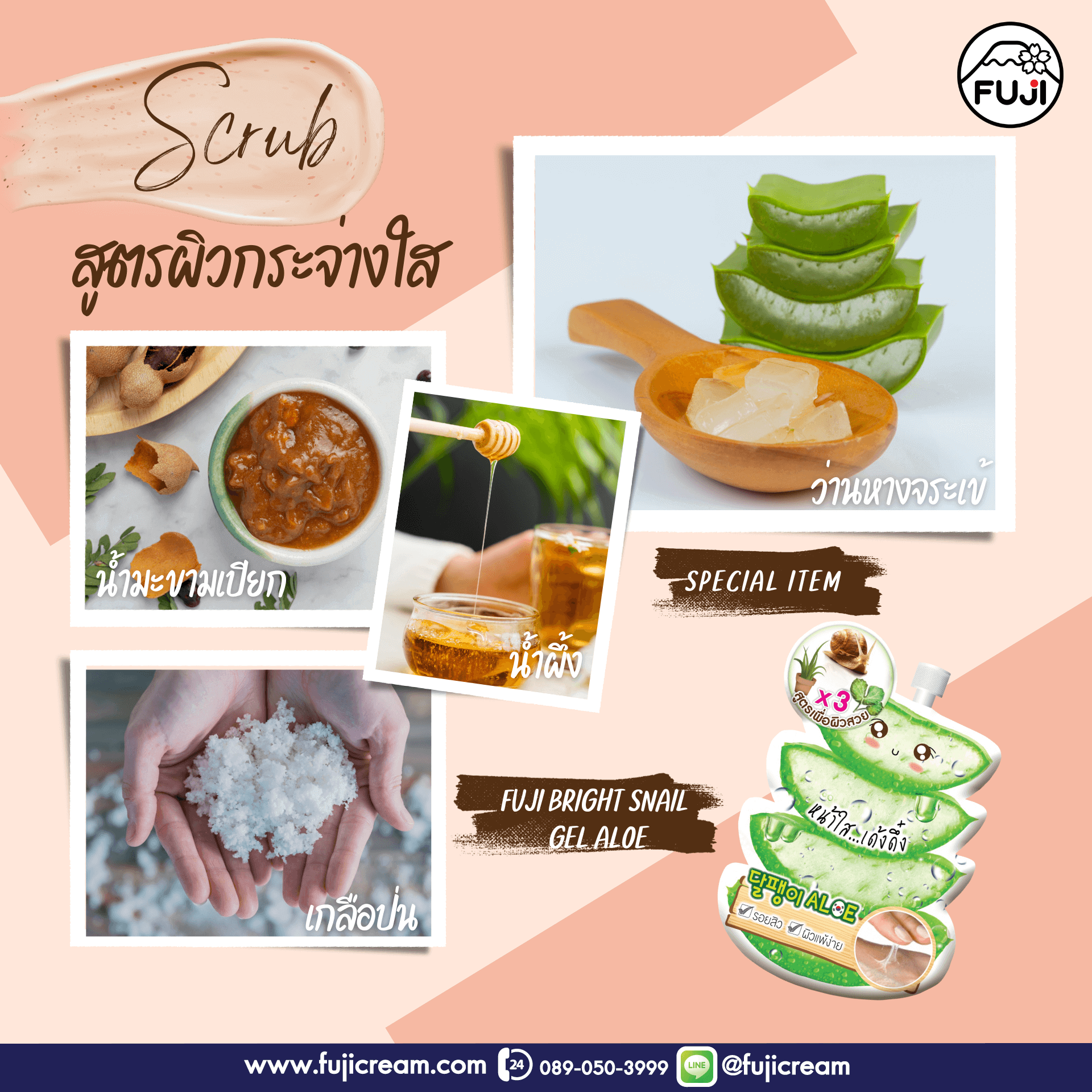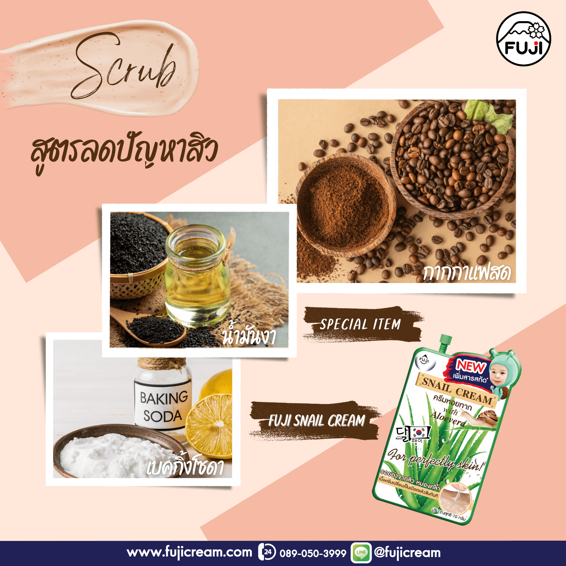 สครับผิว วิธีดูแลผิวอย่างหนึ่งที่สาวๆน่าจะคุ้นเคยเป็นอย่างดี ทำไมเราต้องสครับผิว? เนื่องจากผิวคนเราเมื่อมีปัจจัยต่างๆเพิ่มขึ้นเช่น อายุที่มากขึ้น หรือการพบเจอมลภาวะต่างๆ ทำให้ผิวเกิดความหยาบกร้าน คล้ำเสีย และแห้งกร้าน หรือการเป็นสิวที่หลัง การสครับผิวเป็นกระบวนการช่วยให้เราผลัดเซลล์ผิวที่เสื่อมสภาพได้ง่ายขึ้น ก่อให้เกิดผิวใหม่ที่กระจ่างใสขึ้นได้ แต่วิธีการสครับผิวนั้นมีมากมาย ทั้งการทำสปาตามร้าน หรือการสครับผิวด้วยผลิตภัณฑ์สครับ หรือการสครับผิวด้วยตัวเองจากวัตถุดิบใกล้ๆตัว ทั้งนี้การเลือกส่วนผสมในการสครับผิวจะต้องดูให้เหมาะกับสภาพผิวและต้องสครับอย่างถูกวิธีเพื่อไม่ให้ผิวเกิดความระคายเคืองและอักเสบได้ค่ะ วันนี้ Fujicream มีสูตรสครับผิวที่ให้การดูแลปัญหาผิวด้านต่างๆมาแชร์ค่ะ