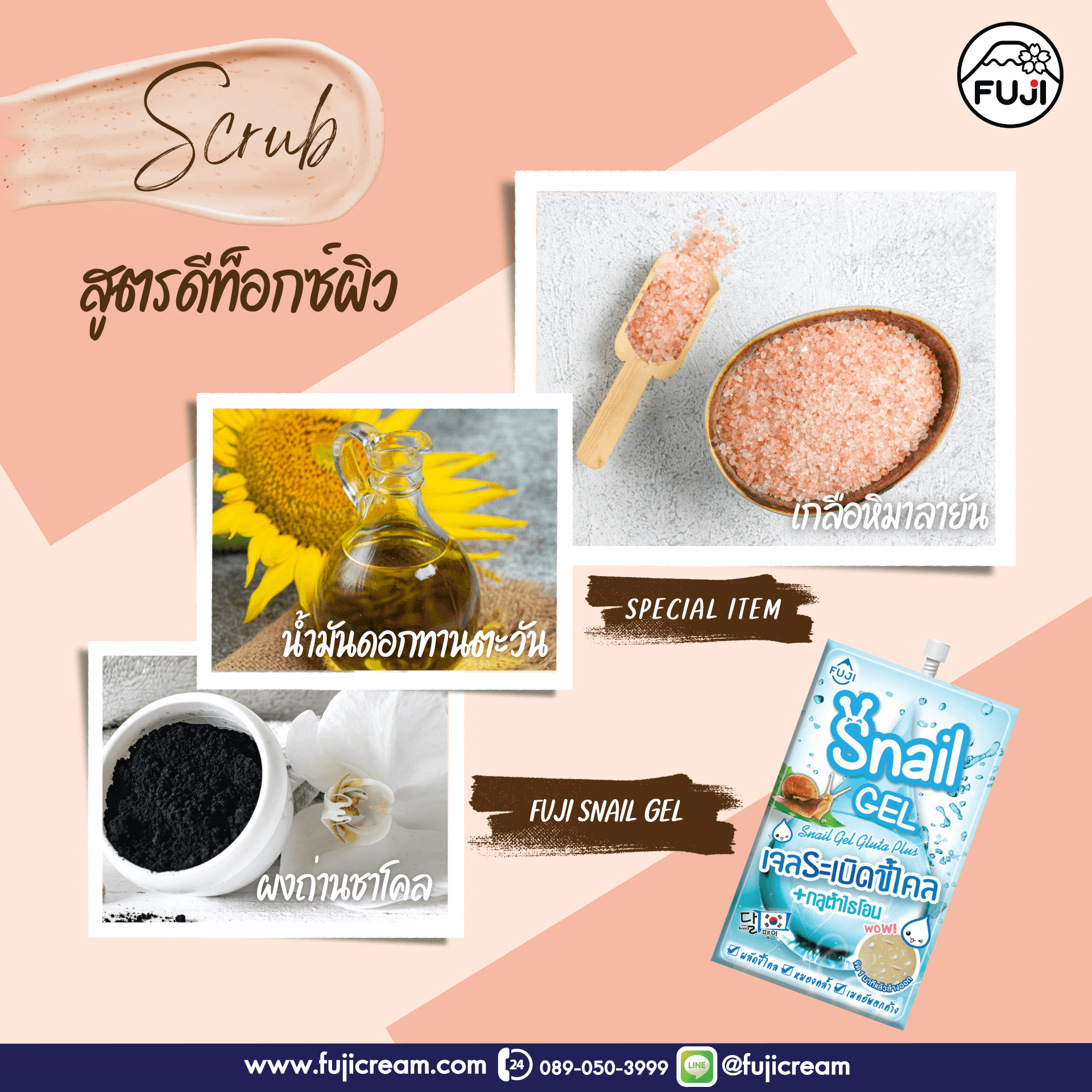 ขอแนะนำ ส่วนผสมพิเศษ! fuji snail gel เติมลงในส่วนผสม เพิ่มประสิทธิภาพด้วยคุณค่าจากเมือกหอยทากและกลูต้าไธโอน ขจัดขี้ไคลและความหมองคล้ำ!
