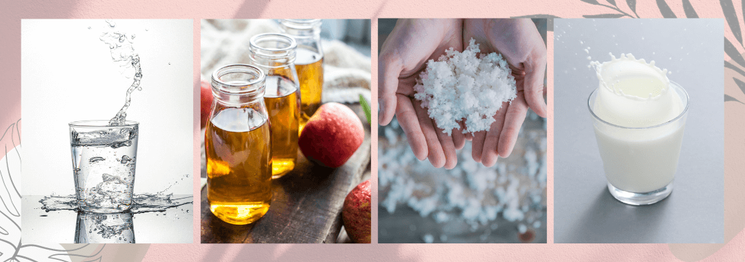 วิธีทำ เตรียมน้ำอุ่นอุณหภูมิประมาณ 40 องศา ในอ่าง ผสมน้ำแร่ยี่ห้อใด้ก็ได้ 3 ลิตร หรือมากกว่านั้นตามความต้องการ ผสม Apple-Cider Vinegar นมผงและเกลือสปา ลงแช่ตัวเป็นเวลา 15-20 นาที จากนั้นล้างตัวด้วยน้ำอุ่น